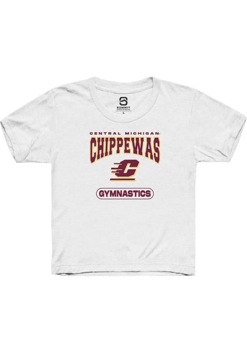 Size Chart for Youth Central Michigan Chippewas White Summit Sportswear Gymnastics Short Sleeve T-Shirt
