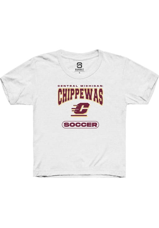 Size Chart for Youth Central Michigan Chippewas White Summit Sportswear Soccer Short Sleeve T-Shirt