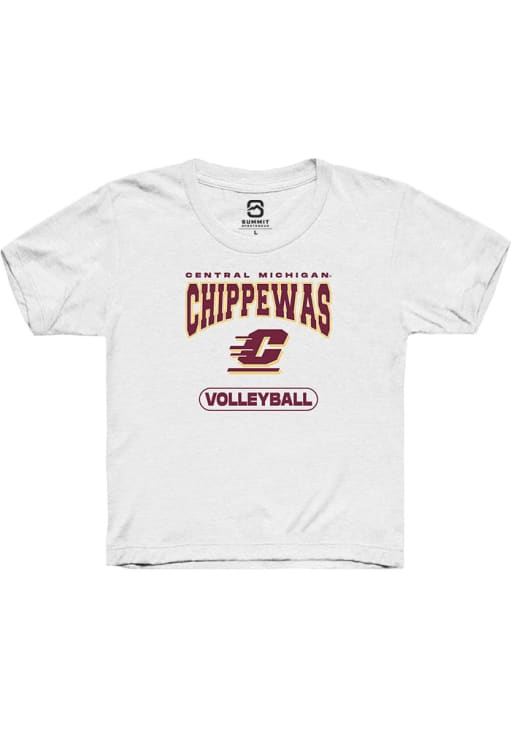 Size Chart for Youth Central Michigan Chippewas White Summit Sportswear Volleyball Short Sleeve T-Shirt