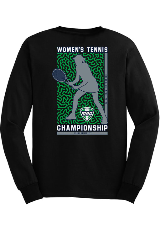 Show your MAC spirit in this MAC Black T Shirt! This MAC Women's Tennis Championship 2026 Long Sleeve T Shirt makes a great layer for cooler nights cheering on the MAC. Featuring a team logo, this MAC Long Sleeve Tee is an essential addition for every fan. !