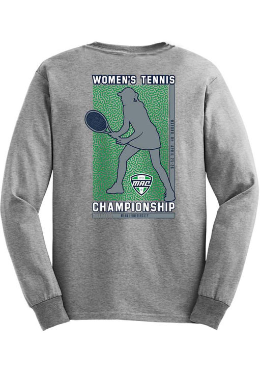 Show your MAC spirit in this MAC Grey T Shirt! This MAC Women's Tennis Championship 2026 Long Sleeve T Shirt makes a great layer for cooler nights cheering on the MAC. Featuring a team logo, this MAC Long Sleeve Tee is an essential addition for every fan. !
