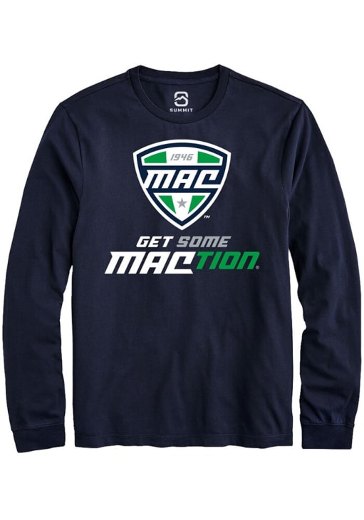 Show your MAC spirit in this MAC Navy Blue T Shirt! This MAC Primary Logo over wordmark Long Sleeve T Shirt makes a great layer for cooler nights cheering on the MAC. Featuring a team logo, this MAC Long Sleeve Tee is an essential addition for every fan. !