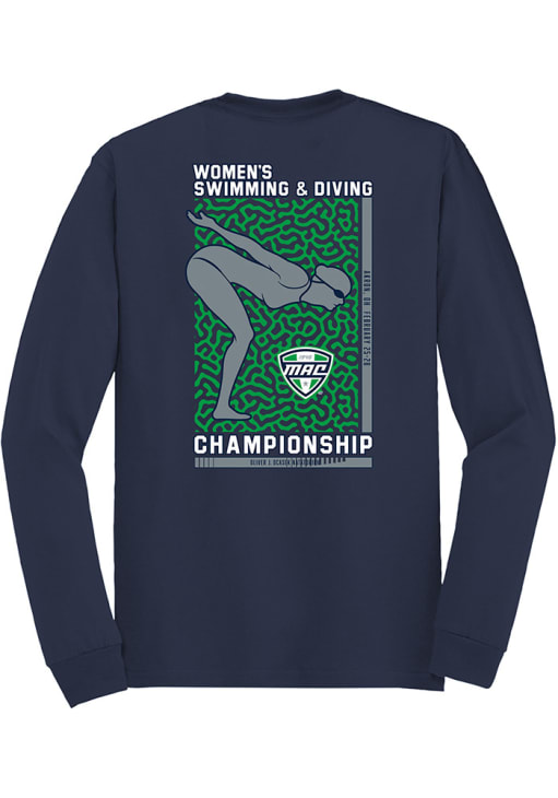 Show your MAC spirit in this MAC Navy Blue T Shirt! This MAC Women's Swim & Dive Championship 2026 Long Sleeve T Shirt makes a great layer for cooler nights cheering on the MAC. Featuring a team logo, this MAC Long Sleeve Tee is an essential addition for every fan. !