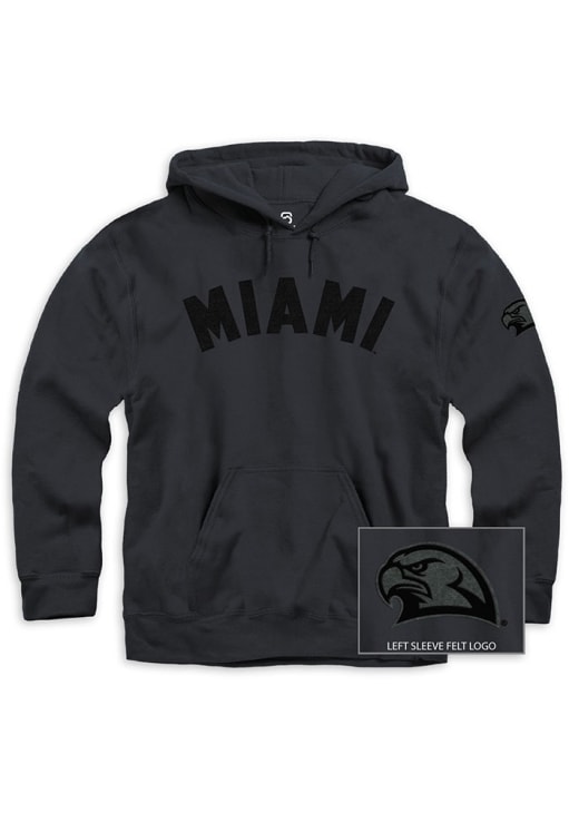 Embrace your Redhawks pride and showcase your team spirit with confidence in this Miami RedHawks Long Sleeve Hoodie! Stay warm and stylish with the Miami of Ohio Mens Black Tonal Felt Hooded Sweatshirt. Designed with twill team logo, this Redhawks Long Sleeve Hoodie is a must-have for dedicated fans.