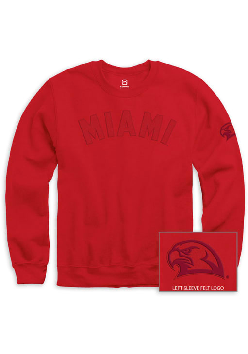 Gear up for the ultimate game day experience with this remarkable Miami RedHawksMens Red Tonal Felt Crew Sweatshirt! Designed with the true fan in mind, this Redhawks Long Sleeve Crew Sweatshirt features a twill team graphic on front chest. Stay warm and comfortable with this Mens Miami of Ohio Redhawks Crew Sweatshirt.