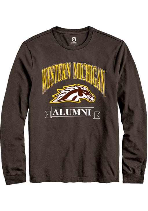 Show your Western Michigan Broncos spirit in this WMU Broncos Brown T Shirt! This WMU Broncos Alumni Banner Long Sleeve T Shirt makes a great layer for cooler nights cheering on the Broncos. Featuring a digitally printed graphic, this Western Michigan Broncos Long Sleeve Tee is an essential addition for every fan. Go Broncos!