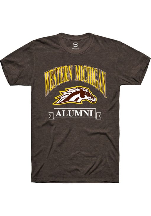Display your team spirit with this remarkable Western Michigan Broncos Summit Sportswear Brown Alumni Banner Short Sleeve T Shirt! The WMU Broncos Short Sleeve Tee showcases a digitally printed graphic that truly sets it apart. Stand out from the crowd and proudly declare your allegiance to the Broncos with this exceptional Brown WMU Broncos T Shirt. Go Broncos!