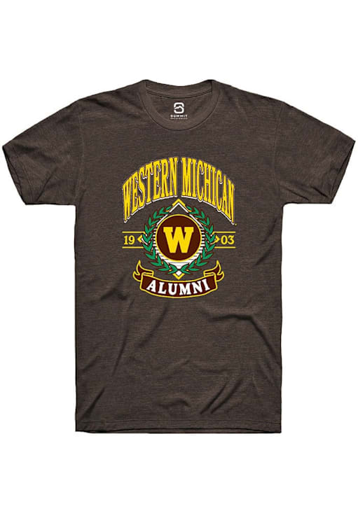 Display your team spirit with this remarkable Western Michigan Broncos Brown Alumni Wreath Short Sleeve T Shirt! The WMU Broncos Short Sleeve Tee showcases a digitally printed graphic that truly sets it apart. Stand out from the crowd and proudly declare your allegiance to the Broncos with this exceptional Brown WMU Broncos T Shirt. Go Broncos!