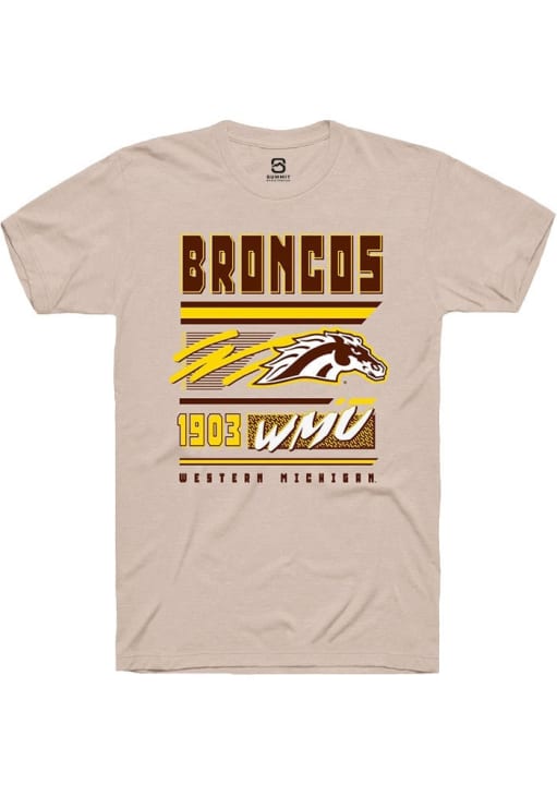 Display your team spirit with this remarkable Western Michigan Broncos Summit Sportswear Tan Retro Short Sleeve T Shirt! The WMU Broncos Short Sleeve Tee showcases a digitally printed graphic that truly sets it apart. Stand out from the crowd and proudly declare your allegiance to the Broncos with this exceptional Tan WMU Broncos T Shirt. Go Broncos!