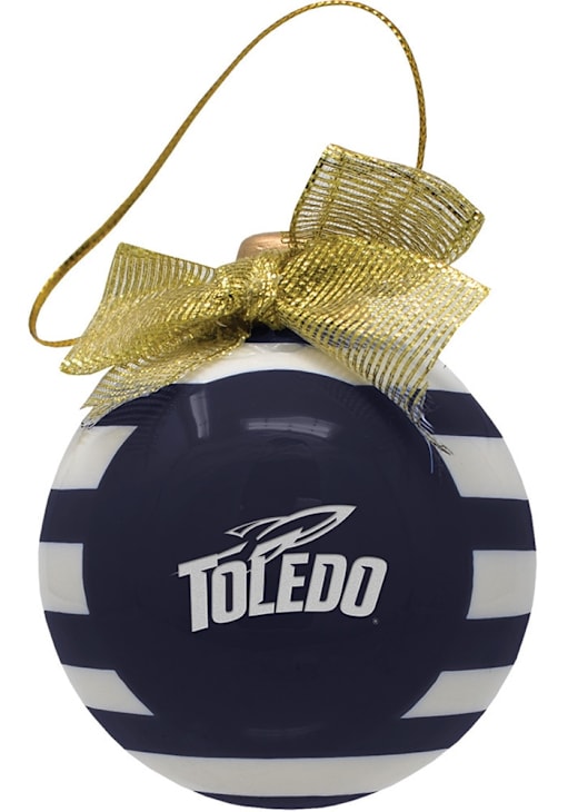 Decorate your Rockets tree this holiday season with this Toledo Rockets Ceramic Striped Ball Ornament. Add Toledo features to your holiday cheer. This Ornament features a team logo on team color background with white stripes. Go Rockets!