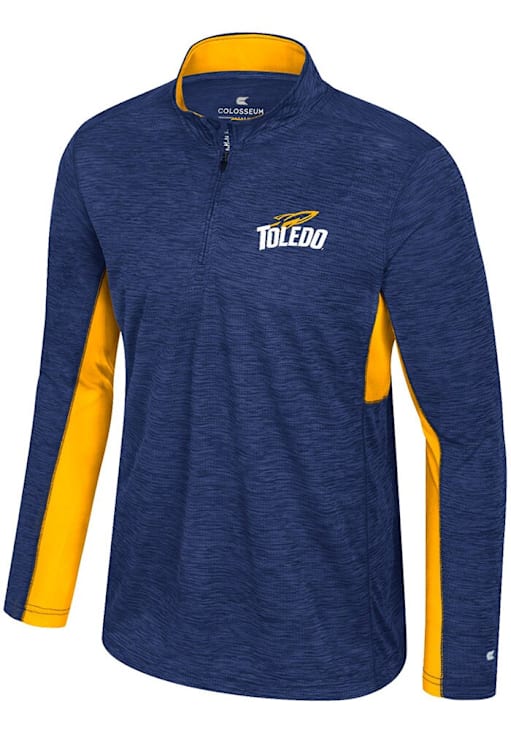Embrace the warmth and showcase your Rockets pride with our Toledo Rockets Long Sleeve Qtr Zip Pullover. This Mens Navy Blue Always Sunny Windshirt Long Sleeve Pullover offers a rubberized logo on left chest for the perfect combination of comfort and style. Elevate your everyday look with this must-have Toledo Rockets Long Sleeve Qtr Zip Pullover.