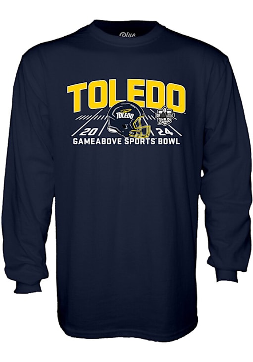 Show your Toledo Rockets spirit in this Toledo Navy Blue T Shirt! This Toledo Football 2024 Sports Bowl Long Sleeve T Shirt makes a great layer for cooler nights cheering on the Rockets. Featuring a screen print team graphic on front chest, this Toledo Rockets Long Sleeve Tee is an essential addition for every fan. Go Rockets!