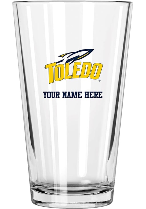 Enjoy a cold one and support your favorite team with this Toledo Rockets Personalized 17oz Mixing Pint Glass. This Pint Glass features a full color team logo and graphics. Go Rockets!
