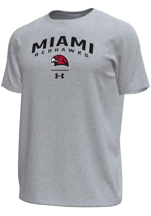 Stay cool and display your Miami RedHawks spirit in this Grey Arch over logo Tech Stretch T Shirt. This Short Sleeve is the perfect Tee for working out, heading to class, or cheering on the Redhawks. Showcasing a screen print team graphic, there's no mistaking your Miami RedHawks pride in this Redhawks Arch over logo Tech Stretch T Shirt!