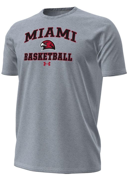 Display your team spirit with this remarkable Miami RedHawks Under Armour Grey Basketball Performance Short Sleeve T Shirt! The Miami of Ohio Short Sleeve Tee showcases a screen print team graphic on center chest that truly sets it apart. Stand out from the crowd and proudly declare your allegiance to the Redhawks with this exceptional Grey Miami of Ohio T Shirt. Go RedHawks!