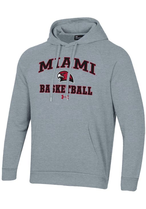 Embrace your Redhawks pride and showcase your team spirit with confidence in this Miami RedHawks Long Sleeve Hoodie! Stay warm and stylish with the Miami of Ohio Mens Grey Basketball Rival Hooded Sweatshirt. Designed with midweight fleece material with a hood with drawstrings, kangaroo pouch and team graphics on the chest, this Redhawks Long Sleeve Hoodie is a must-have for dedicated fans.
