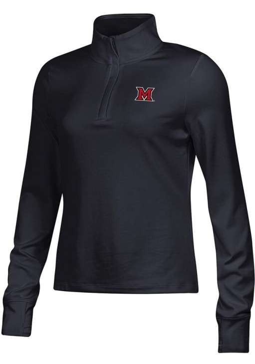 Embrace your Redhawks spirit with pride in this Miami RedHawks Long Sleeve Qtr Zip. This Womens Black Motion Long Sleeve Pullover showcases a screen print team logo on left chest. You'll want to wear this Miami RedHawks Long Sleeve Qtr Zip every day.