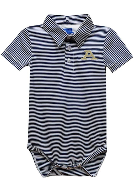 Your little Akron Zips fan will be the cutest at the game in this Navy Blue Akron Zips Pencil Stripe One Piece Polo. This Pencil Stripe One Piece Polo features a team embroidery left chest.