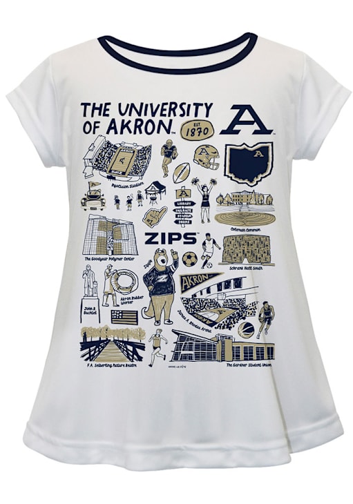 Support for your favorite team in this Toddler Girls White Akron Zips Impressions Short Sleeve T-Shirt! This T-Shirt features a hand sketched artwork perfect to keep the new fan cheering for your favorite team, so everyone will know your favorite team is the Akron Zips! This is the perfect Akron Zips Toddler Girls T-Shirt for wearing to game day or everyday. Go Zips!