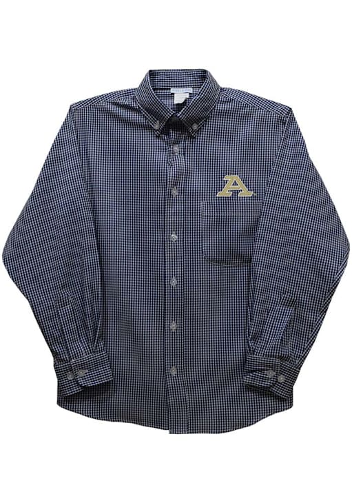 Product Details Product Details Embroidered school logo on chestLong sleeve with cuffsBack yoke with center pleat, button down collarPocket on left side and front button placketMini check print55% COTTON/45% POLYESTERMachine wash warm. Tumble dry, Cool iron. Do not bleach. Wash with like colors. Officially Licensed Style your little Zips fan in this Navy Blue Akron Zips Long Sleeve Polo. This Gingham Polo features a embroidered team logo.
