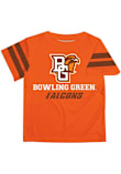 Product Details Product Details Moisture wicking breathable soft natural feel knit fabric.Lightweight fabric for easy comfortSublimated graphics and colorsCrewneck overstitched collarDouble needle cover stitch finished hemlines100% POLYESTER Officially Licensed Your future Bowling Green Falcons will be gameday ready in this OrangeYouth Short Sleeve Tee. This Stripes T-Shirt features a stripes on sleeves.