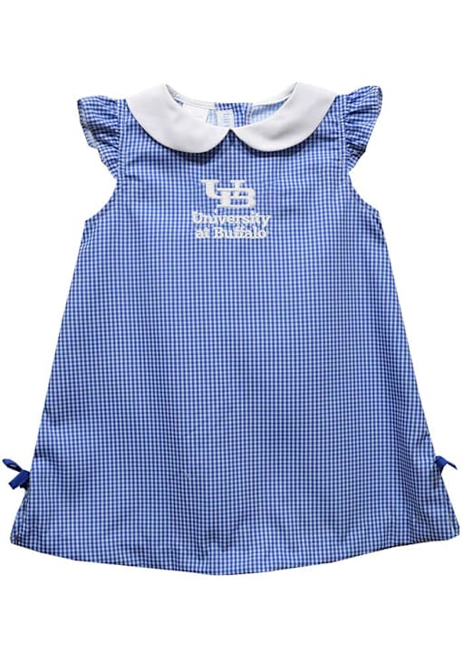 Let your baby's unique style show in this Buffalo Bulls Baby Girls Dress. Featuring a embroidered team logo and gingham print, this Blue Bulls Dress is the perfect way to show off your style and pride for the Buffalo Bulls.