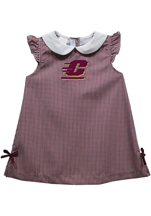 Let your baby's unique style show in this Central Michigan Chippewas Baby Girls Dress. Featuring a embroidered team logo and gingham print, this Maroon Chippewas Dress is the perfect way to show off your style and pride for the Central Michigan Chippewas.