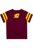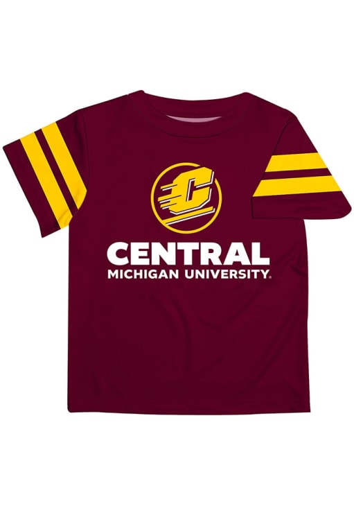 Product Details Product Details Moisture wicking breathable soft natural feel knit fabric.Lightweight fabric for easy comfortSublimated graphics and colorsCrewneck overstitched collarDouble needle cover stitch finished hemlines100% POLYESTER Officially Licensed Every future Central Michigan Chippewas fan need a Maroon Infant Short Sleeve Tee. This Stripes T-Shirt features a stripes on sleeves.