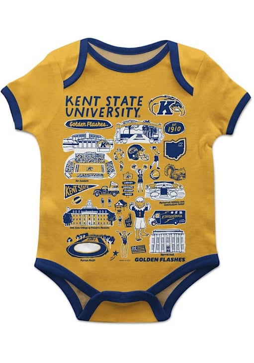 Your little Flash the Golden Eagle fan will look adorable in this Baby Gold Kent State Golden Flashes Impressions One Piece! This Kent State Golden Flashes Romper features a hand sketched artwork perfect to keep the new fan cheering for your favorite team.