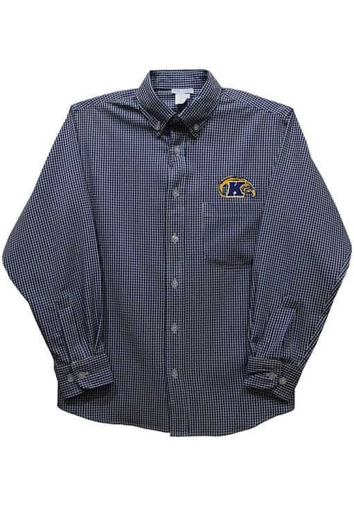 Your little Flash the Golden Eagle fan a will love supporting the Kent State Golden Flashes in this Blue Long Sleeve Polo. This Gingham Polo features a embroidered team logo.