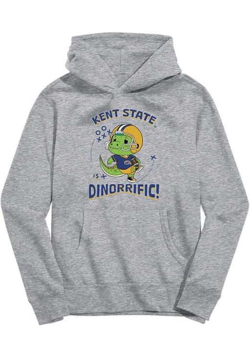 Go to gamedays in style in this Youth Grey Kent State Golden Flashes Vive La Fete Dino-Riffic Hooded Sweatshirt! This Flash the Golden Eagle Hoodie features a screen printed team graphic that will be sure to keep you warm and cozy.