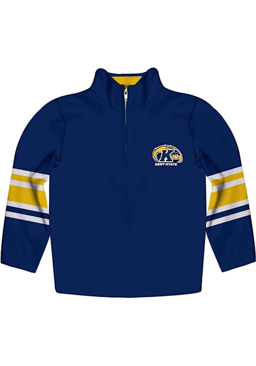 Show your style in this Youth Navy Blue Kent State Golden Flashes Stripe Quarter Zip! This Long Sleeve Shirt features a smooth finish outside and fleece texture inside. You'll be cozy and comfortable heading to the game with the Flash the Golden Eagle Youth Kent State University Quarter Zip.