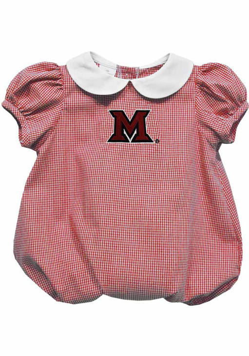 Product Details Product Details Your little Redhawks fan will look adorable in this Baby Red Miami RedHawks Gingham Collar One Piece! This Miami RedHawks Romper features a embroidered team logo on gingham print.
