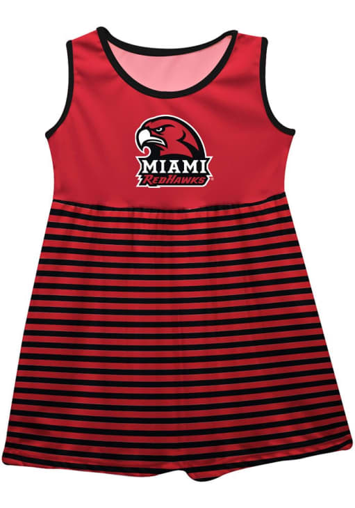 Let your unique style show in this Miami RedHawks Toddler Girls Dress. Featuring a striped skirt and team logo on solid color chest, this Red Redhawks Dress is the perfect way to show off your style and pride for the Miami RedHawks.