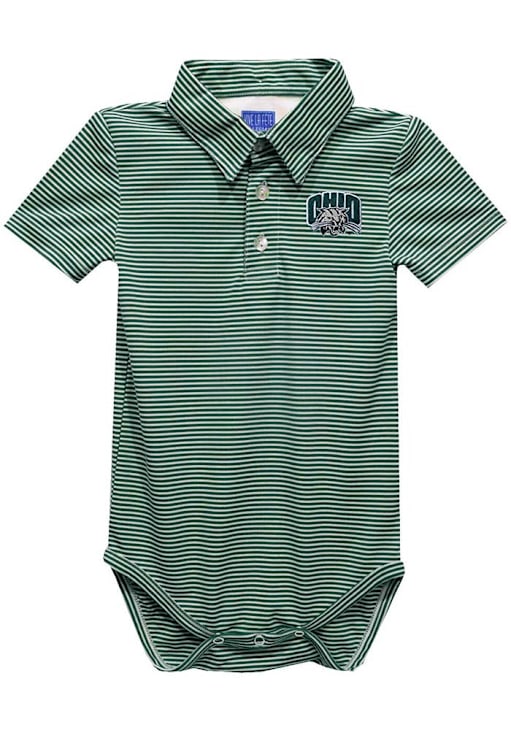 Baby Ohio Bobcats Green Vive La Fete Pencil Stripe Short Sleeve One Piece Polo