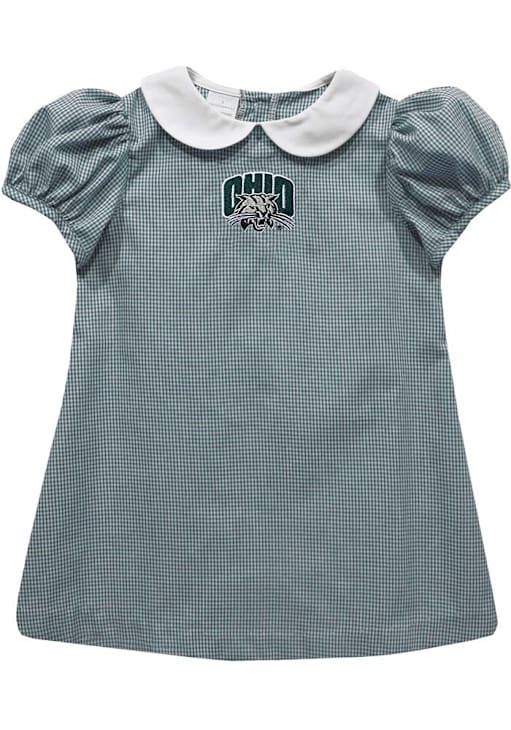 Let your unique style show in this Ohio Bobcats Toddler Girls Dress. Featuring a embroidered team logo and gingham print, this Green Bobcats Dress is the perfect way to show off your style and pride for the Ohio Bobcats.