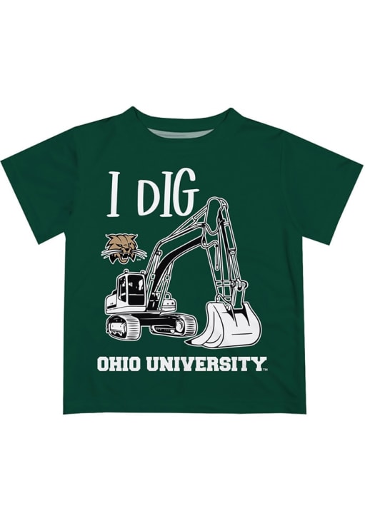 Your future Bobcats will be ready to cheer in this Toddler Ohio Bobcats Green Short Sleeve Tee. This Ohio Bobcats T-Shirt features a excavator graphic on the back of the shirt.
