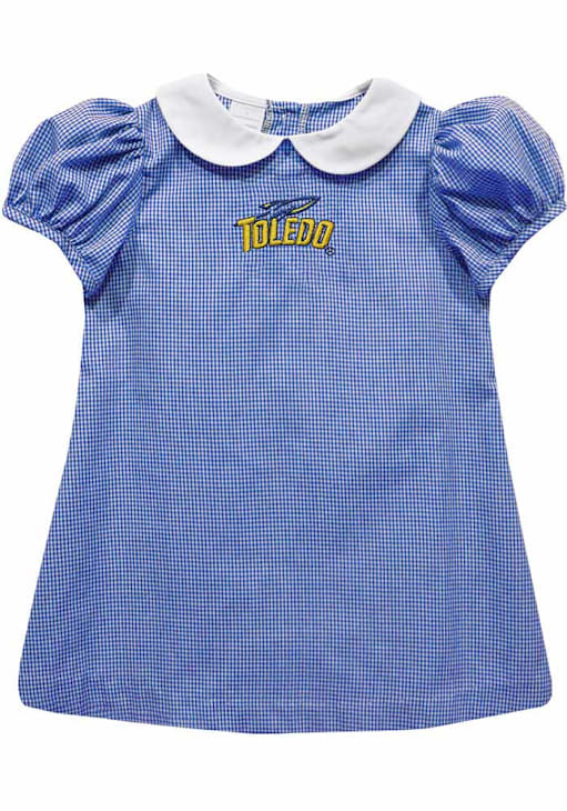 Let your baby's unique style show in this Toledo Rockets Baby Girls Dress. Featuring a embroidered team logo and gingham print, this Navy Blue Rockets Dress is the perfect way to show off your style and pride for the Toledo Rockets.