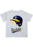 Product Details Product Details Moisture wicking breathable soft natural feel knit fabricLightweight fabric for easy comfortSublimated graphics and colorsCrewneck overstitched collarDouble needle cover stitch finished hemlines100% POLYESTER Officially Licensed Every future Toledo Rockets fan need a White Infant Short Sleeve Tee. This Dripping Helmet T-Shirt features a dripping baseball helmet graphic.