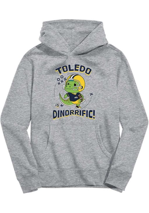 Product Details Product Details top-quality long-lasting screen-printedAwesome graphics, fun, and game day colors hoodiemid-weight fleece Officially Licensed Go to gamedays in style in this Toddler Grey Toledo Rockets Vive La Fete Dino-Riffic Hooded Sweatshirt! This Rockets Hoodie features a screen printed team graphic that will be sure to keep you warm and cozy.