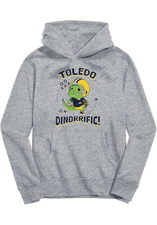 Product Details Product Details top-quality long-lasting screen-printedAwesome graphics, fun, and game day colors hoodiemid-weight fleece Officially Licensed Go to gamedays in style in this Youth Grey Toledo Rockets Vive La Fete Dino-Riffic Hooded Sweatshirt! This Rockets Hoodie features a screen printed team graphic that will be sure to keep you warm and cozy.