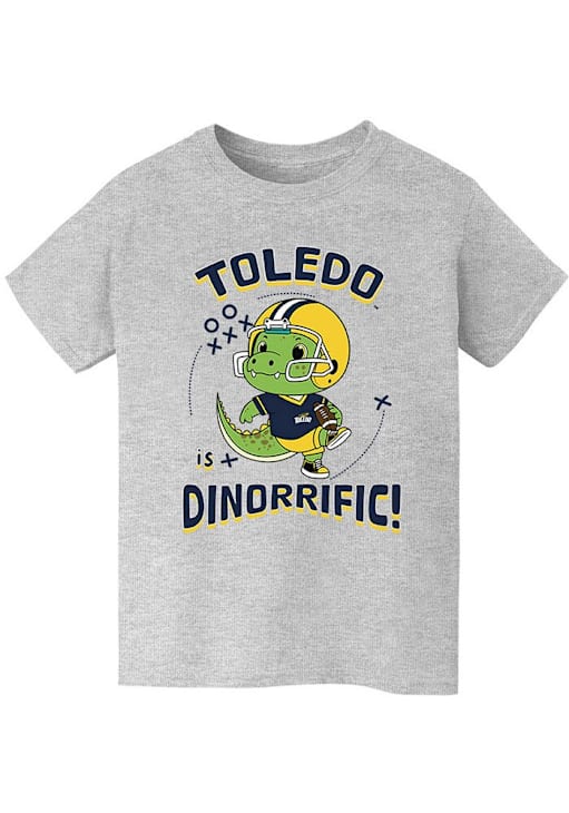Product Details Product Details made with top-quality long-lasting cotton knit fabriccomfy, strong and breathableawesome screen-printed graphics Officially Licensed Your future Toledo Rockets will be gameday ready in this GreyYouth Short Sleeve Tee. This Dino-Riffic T-Shirt features a screen printed team graphic.