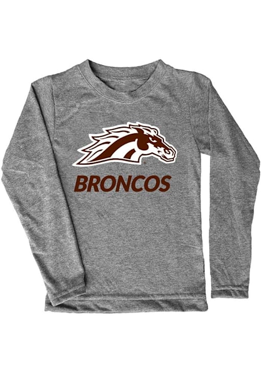 Product Details Product Details Screen printed with team logoUnisexCotton ribbedCrew neckHemmed100% CottonImport, Domestic Officially Licensed Style your little Broncos fan in this Grey Western Michigan Broncos Long Sleeve T-Shirt. This Aaron T-Shirt features a Screen print team logo.