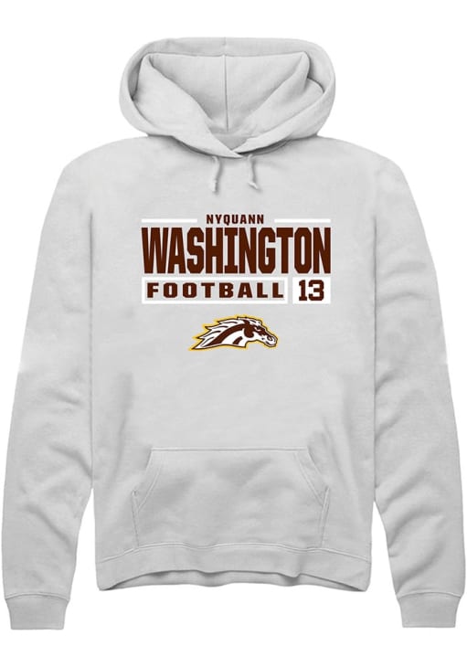 Nyquann Washington Rally Mens White Western Michigan Broncos Football NIL Stacked Box Hooded Sweat..