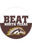 Product Details Product Details Show off your Broncos pride with this Western Michigan Broncos BEAT North Texas 3" Button. This Button features a team logo with team colors, making it the perfect gameday accessory.
