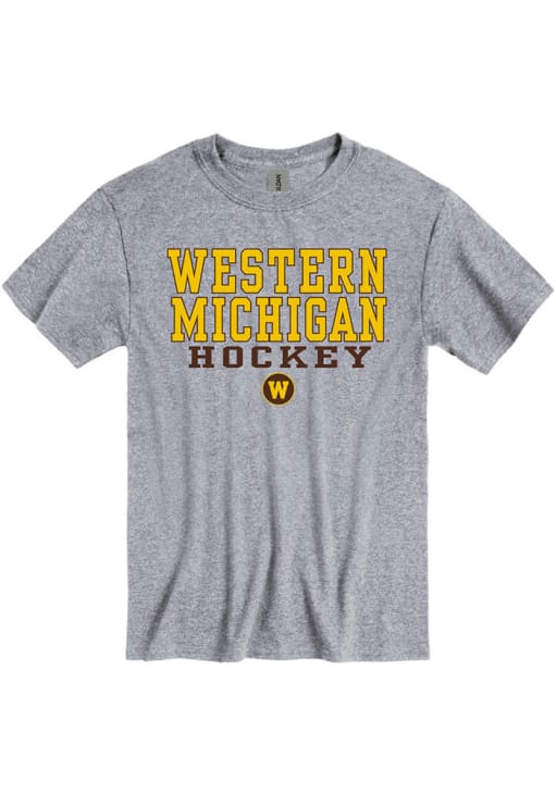 Size Chart for Western Michigan Broncos Hockey Stacked Short Sleeve T Shirt - Grey