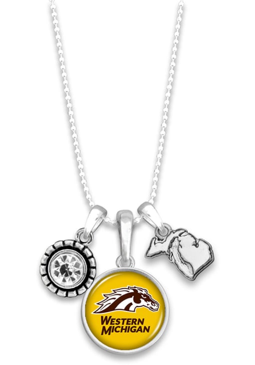 Product Details Product Details Features three pendantsIncludes your favorite school mascotShape of school's home state is displayedSchool's primary color charm Officially Licensed Make every outfit better with a touch of Broncos pride by getting this Western Michigan Broncos Home Sweet School Womens Necklace from Rally House! You'll love wearing your Necklace, as it features a team logo on team color background.