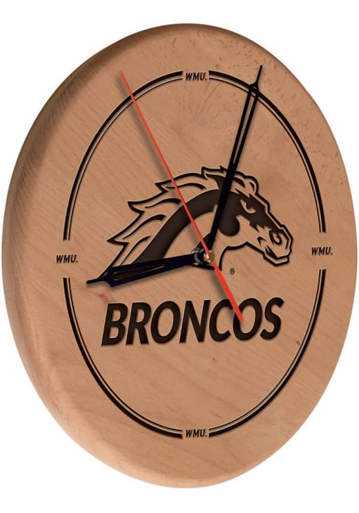 Product Details Product Details Laser Engraved GraphicsMulti-Step Finish ProcessAccurate AA Battery Powered Quartz Movement13" Diameter, 1 Inch Thick Solid WoodFlush Mounted Keyhole Hanger Officially Licensed Western Michigan Broncos Laser Engraved Wall Clock is a great way to count down to the next Broncos game. Liven up your decor with this Wall Clock, which features a laser engraved team logo. Go Broncos