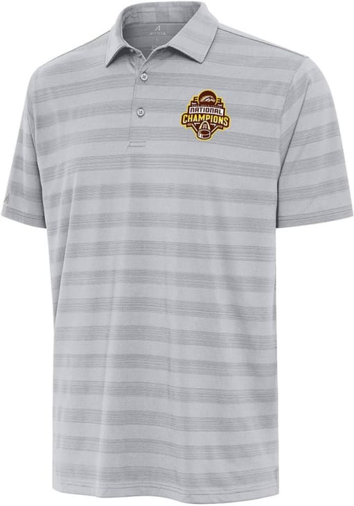 Enhance your professional style with this striking Mens Ash Short Sleeve Polo Shirt! Showcase your team pride among colleagues with this exceptional WMU Broncos Ash 2025 Hockey National Champions Tunnel Short Sleeve Polo. Stand out and make a statement in this Western Michigan Broncos Short Sleeve Polo, featuring a matte buttons and tonal shadow stripes that adds a touch of distinction to your look.