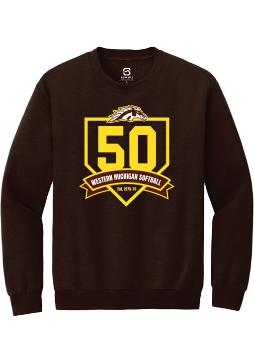 Gear up for the ultimate game day experience with this remarkable Western Michigan BroncosMens Brown Softball 50th Anniversary Crew Sweatshirt! Designed with the true fan in mind, this Broncos Long Sleeve Crew Sweatshirt features a team logo. Stay warm and comfortable with this Mens WMU Broncos Broncos Crew Sweatshirt.